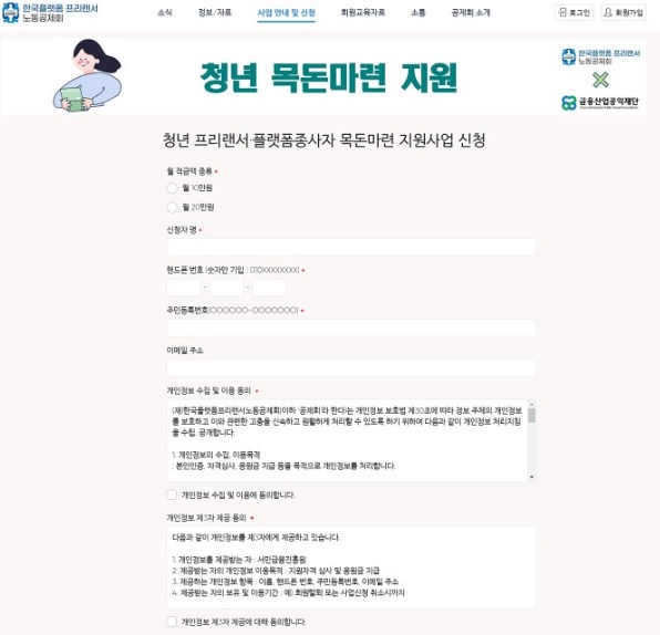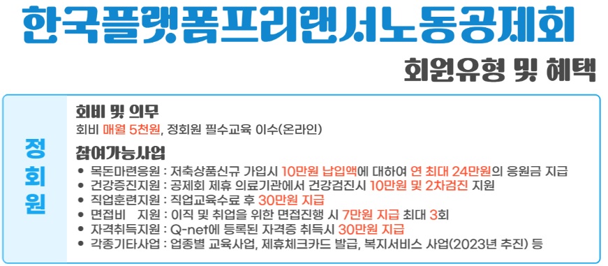 한국노동공제회 정회원으로 가입한 청년(사업신청일 기준 만 19세~만 39세) 프리랜서플랫폼 종사자 1,000명