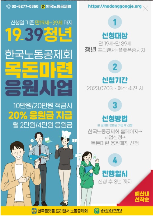 프리랜서는 소속된 회사가 없어 각종 직장인 대상 금융 상품 혜택이나 복리 후생을 누리기 어렵습니다. 그런데 프리랜서들에게 좋은 소식이 있습니다. 바로 한국플랫폼프리랜서노동공제회라는 단체가 설립된 사실입니다. 프리랜서 노동공제회에서 운영하는 지원사업은 생각보다 다양합니다. 오늘은 다양한 사업 중에서 청년 목돈마련 지원 사업을 소개하려고 합니다. 신청자격 및 방법에 대해 알아보겠습니다.