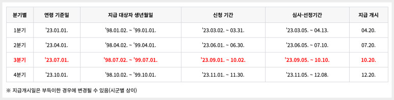 ● 3분기 신청 기간:2023년 9월 1일(금) 09:00 ~ 10월 2일(월) 18:00