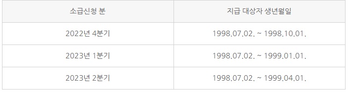 1) 2023년 7월 1일을 기준 만 24세 청년에 한해, 지난 분기 미신청분 추가신청 가능