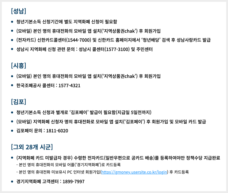 - 청년들의 삶의 질과 건강 수준 향상하고 청년의 사회적 기본권 보장을 위하여 경기도와 시군이 협력하여 지급하는 정기적인 소득 지원금을 말합니다.