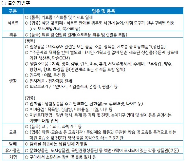※ 자산성 물품 : 악기, 스포츠용품, 생활용품, 유가증권 등 비허용 범주 항목