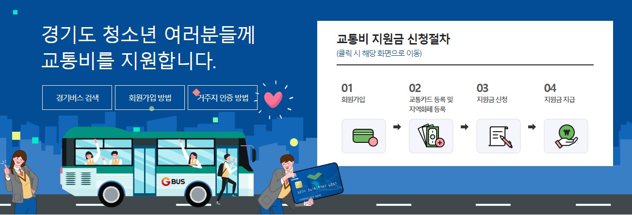 신청방법 : 경기도 청소년교통지원포털에서 신청하면 됩니다.