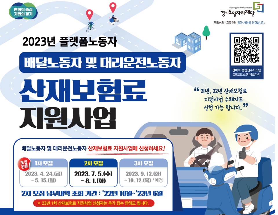 경기도가 경기도 내 주소지를 두거나 관내 택배/대리운전 업무를 수행하는 노동자 혹은 사업주를 위한 산재보험료를 지원합니다. 오늘은 플랫폼 노동자들의 안전을 위한 든든한 사업을 소개하려고 합니다. 바로 경기도일자리재단에서 진행하는 2023년 경기도 플랫폼 노동자 산재보험료 지원사업입니다. 어떻게 신청하는지 알아보겠습니다.