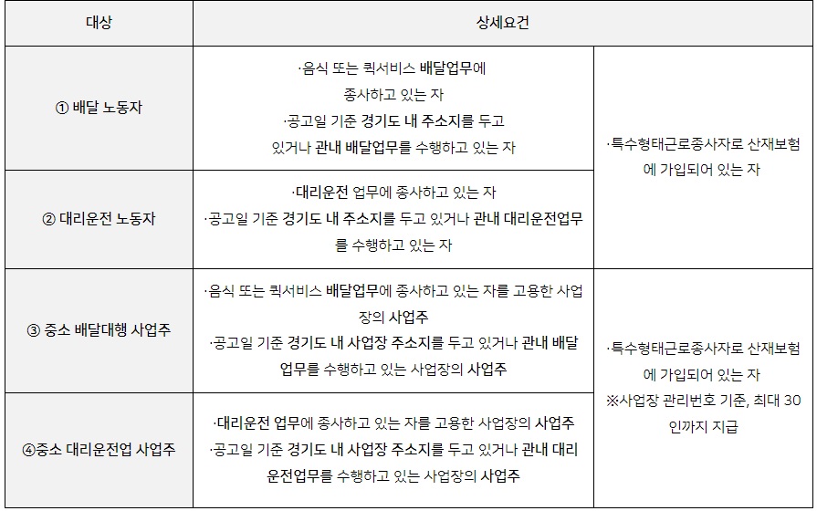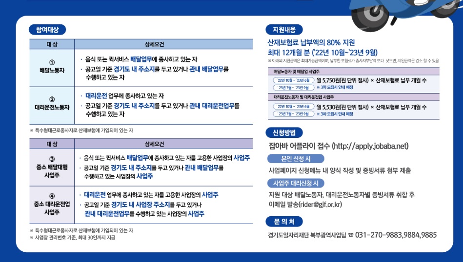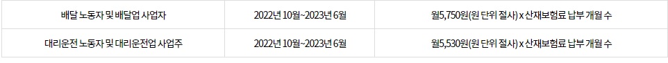 ※ 2021년, 22년 배달노동자 산재보험료 지원사업 수혜자 지원 가능
