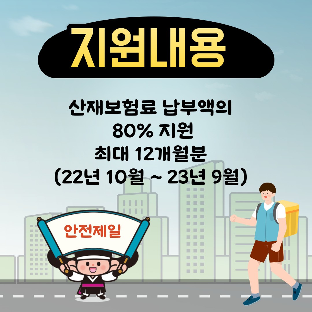 - 산업재해보험 납부액의 80% 최대 12개월 지원(2022년 10월~2023년 9월)