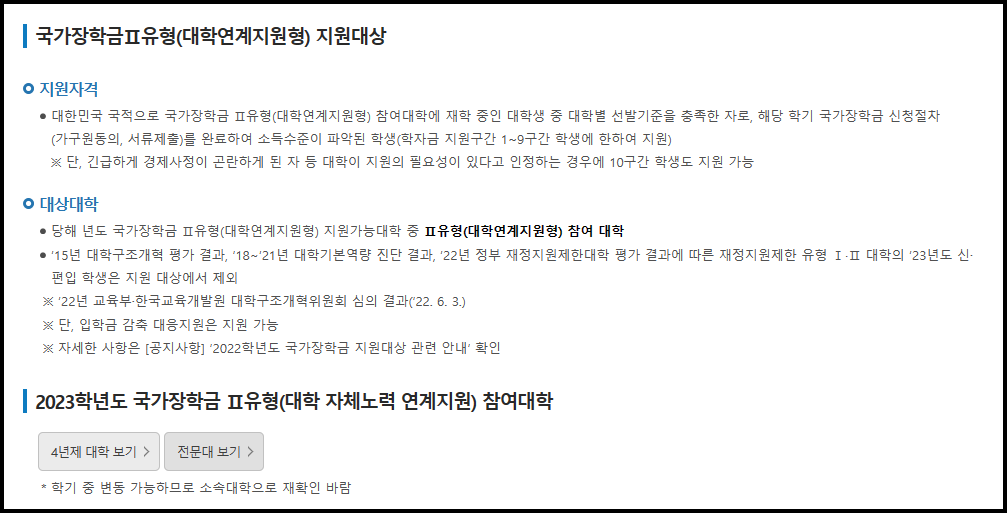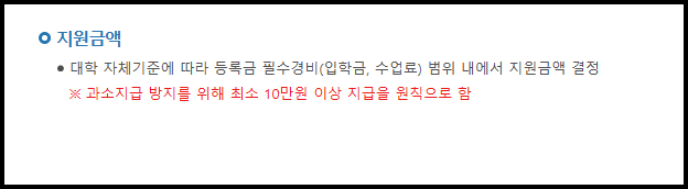 - 2 유형 : 국내 대학에 재학 중인 학자금 지원 9구간 이하 대학생 중 대학 자체 선발기준에 따라 선발