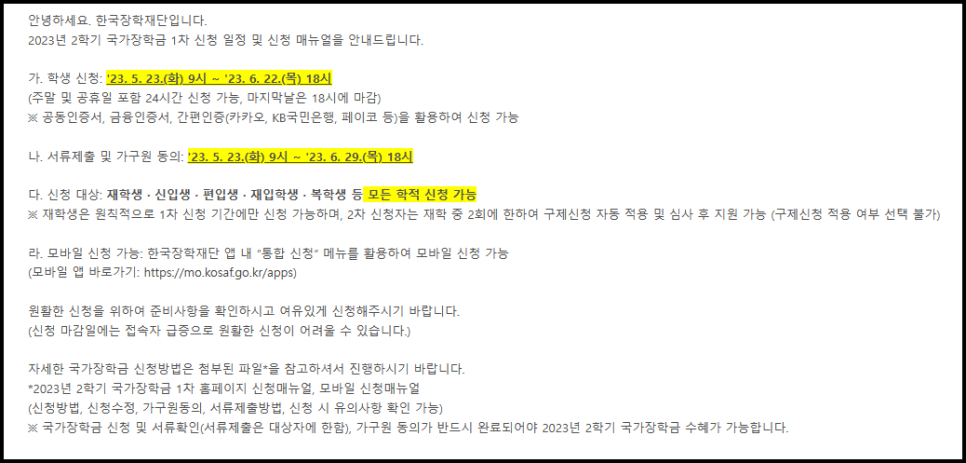 - 신청 방법: 한국장학재단 홈페이지 온라인 접수