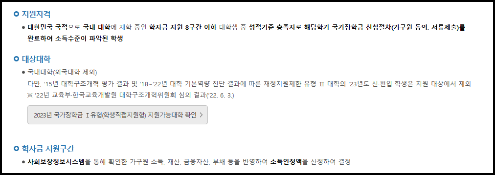 - 1 유형 : 국내 대학에 재학 중인 학자금 지원 8구간 이하 대학생 중 성적기준에 해당하는 자