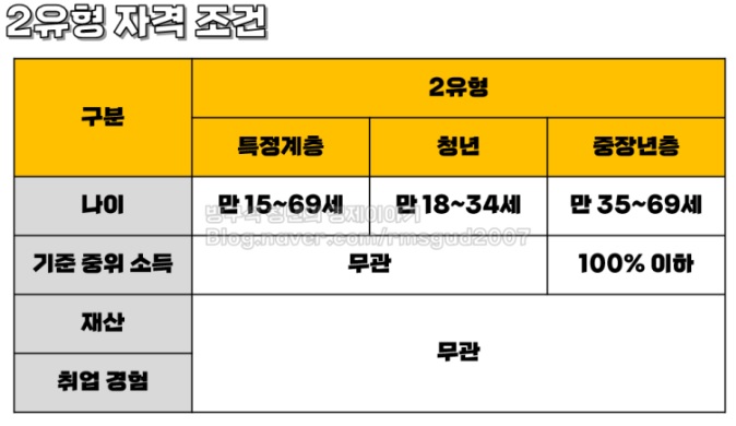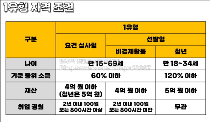 ⑦ 신청인 본인의 월평균 총소득이 1인가구 기준 중위소득의 60%를 넘는 사람(매월 정기적으로 구직촉진수당 수급액인 50만 원 이상 소득이 발생하는 자는 1 유형 수급자격이 인정돼도 구직촉진수당을 받을 수 없다. 정기적인 소득이 있다면 반드시 문의해야 합니다.)