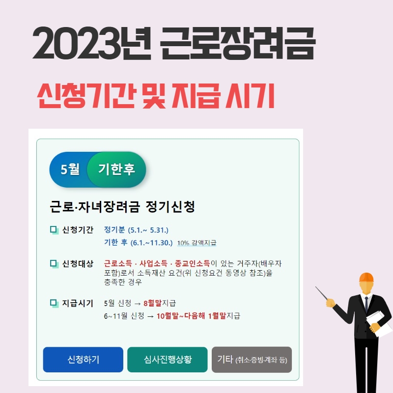 5월이 되면 정기적인 근로장려금을 신청해야 합니다. 자녀가 있거나 전년도 소득이 조금 모자랐다면 정부가 제공하는 지원제도를 놓쳐서는 안 됩니다. 그래서 오늘은 2023년 근로장려금의 조건과 적용 방법을 자세히 알아보겠습니다. 급하신 분은 여기서 신청하시면 됩니다