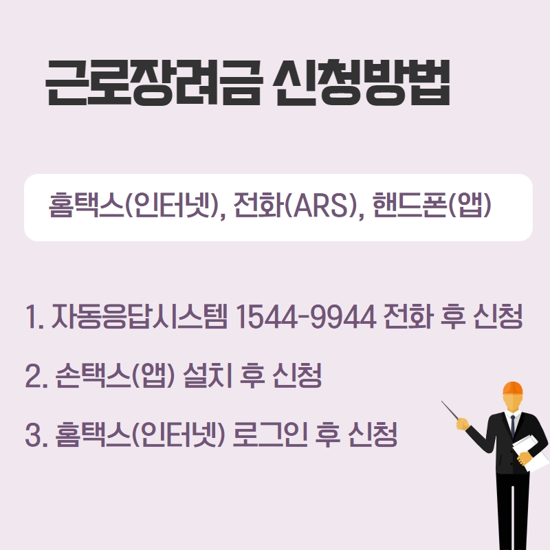 근로장려금을 신청할 수 있는 방법은 총 3개입니다.