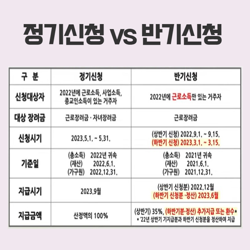 반기와 정기의 차이를 잠시 비교해 보면 근로소득만 있는 주민만 반기 대상입니다.