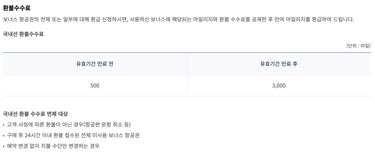 다음은 환불 수수료입니다. 먼저 국내선은 유효기간 500마일 전, 유효기간 3000마일 후에 공제됩니다. 구매 후 24시간 이내에 무료 환불이 가능합니다.