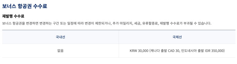 마일리지 항공권 변경 규정