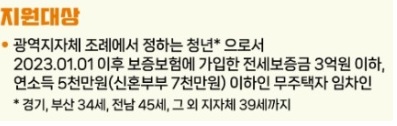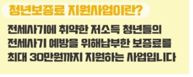- 2023년 1월 1일 이후 가입 및 납부 완료 한 보증보험료 지원(최대 30만 원)
