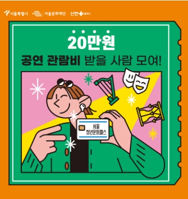 ● 공연예술분야 관람지원비 1인당(연간) 20만 원 문화이용권(카드) 지급(신한은행 계좌개설 및 체크카드 발급필수)