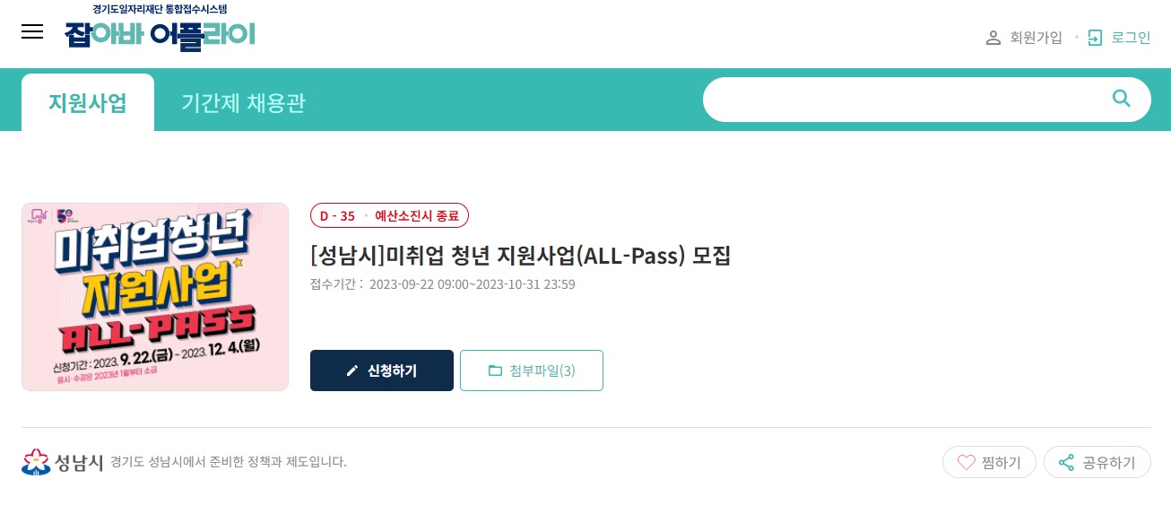 : 온라인 신청(경기도일자리재단 통합접수시스템 잡아바)