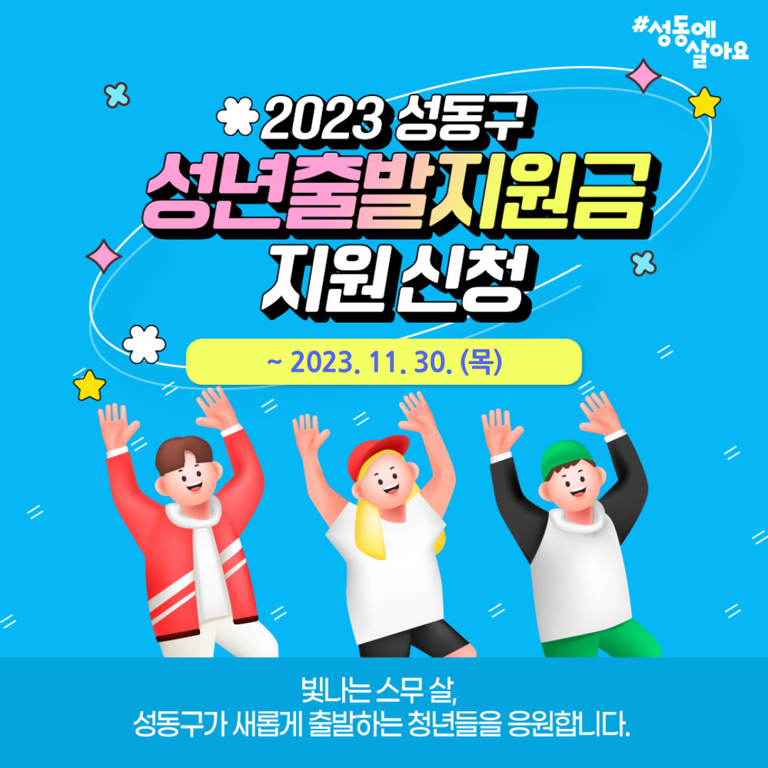 오늘은 만 19세가 되는 청년들에게 성년으로서의 새로운 시작을 지원하고 자기 개발비 및 문화체육 활동비를 지원하는 서울 성동구 성년출발지원금에 대해 알아보겠습니다. 모집한 지 오래되었지만 아직 접수 중이니 아래 내용을 확인하시고 신청해 주시기 바랍니다.