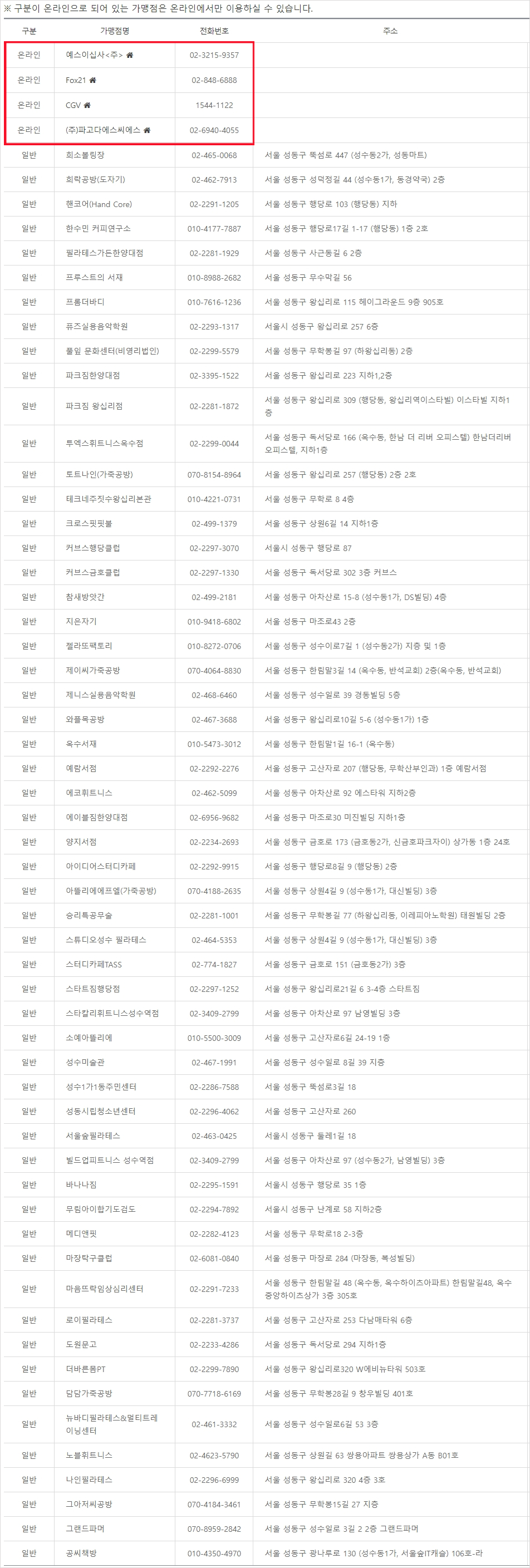 자기 개발비와 문화체육활동비를 지원하는 바우처 카드라 이용할 수 있는 가맹점이 많지 않습니다. yes24, CGV, 폭스 21, 파고다에서 온라인으로 이용하실 수 있지만, 그 외에는 온라인으로 이용하실 수 없습니다. 오프라인 가맹점을 확인하고 해당 매장에서 결제해야 합니다. 바우처 카드에 대한 자세한 내용은 홈페이지에서 확인하실 수 있습니다.