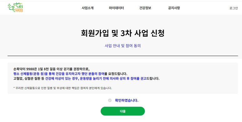 - 손목닥터 9988 서비스 신청 및 회원가입 하기