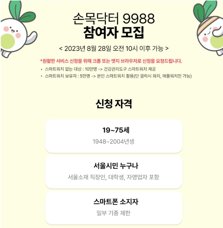 - 스마트폰 소지자 (스마트 워치 있다면 본인 것 사용, 없다면 서울시에서 발송해 줍니다.)