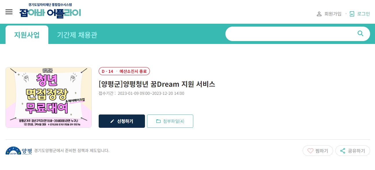 : 신청일 현재 주민등록상 양평 거주 청년(만 18세~39세 이하) 구직자(면접대상자 증빙 자료 소유자)