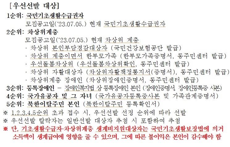 ◦ 우선선발대상자가 반복참여가 가능한 것은 아님(선발 시 우선 한다는 의미임)