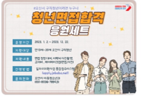 오산시에서 취업을 준비하는 청년 누구나 ①면접정장 무료 대여 ② 이력서 사진촬영 ③ 헤어 메이크업 ④ 교재비를 지원합니다. 청년들의 구직비용 부담을 낮추고, 구직활동을 촉진하여 취업 성공을 지원합니다. 예산 소진 시 종료되니 서둘러 신청하시기 바랍니다. 아래에서 지원자격 및 신청방법을 알아보겠습니다