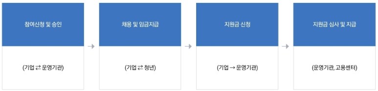 홈페이지 사전참여(운영기관) 신청 > 승인 > 청소년모집 > 지원신청 > 6개월 후 지원금 지급