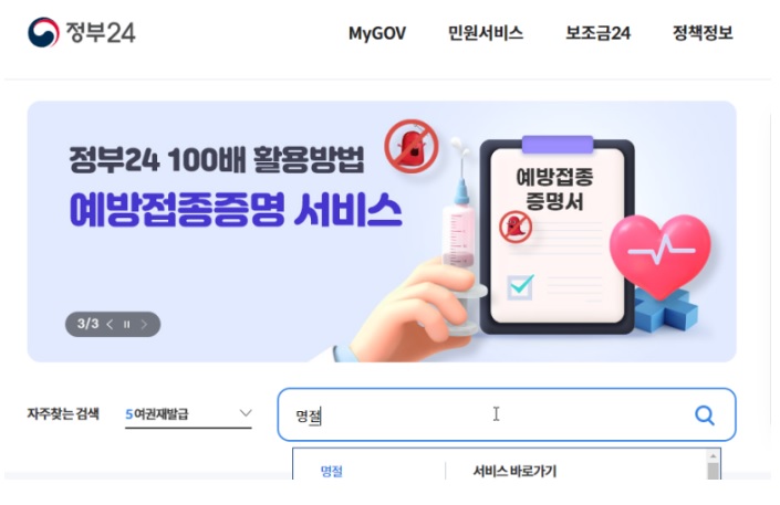 먼저 내가 거주하는 지자체에서 지원되는 명절지원금 검색을 위해서는 [정부 24] 홈페이지로 들어가셔서 위와 같이 검색화면에 명절이라고 입력을 해주시고 검색을 해주세요.
