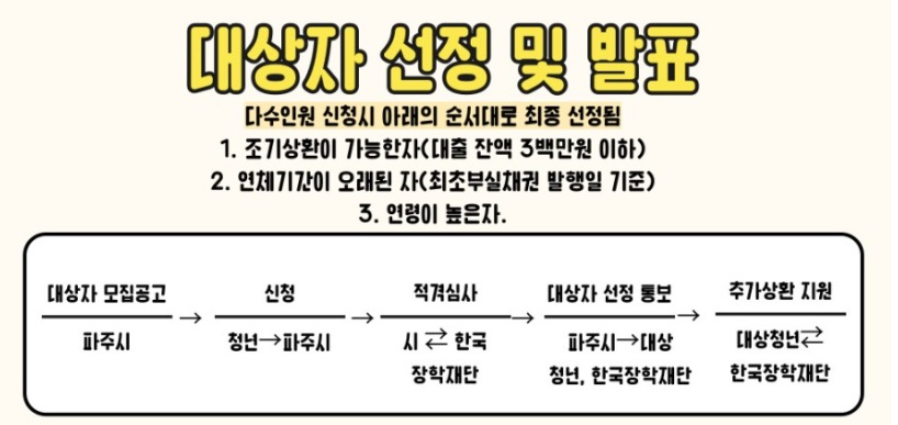 - 지원 제외 : 파주시나 타 기관에서 학자금 대출 관련 유사사업의 지원을 받은 대상자는 중복 혜택을 받을 수 없습니다