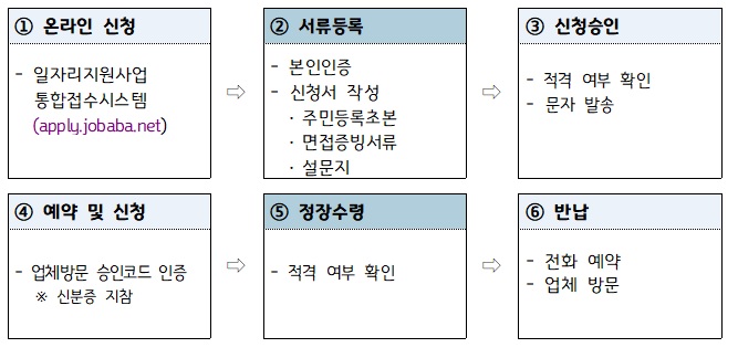 ② 제출서류: 신청서, 개인정보제공동의서, 주민등록초본, 면접증빙서류(문자 메일 등), 설문지 이용절차