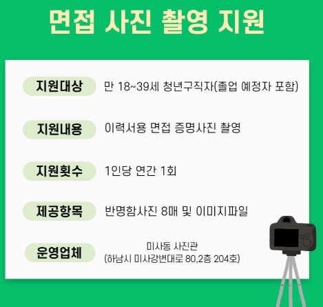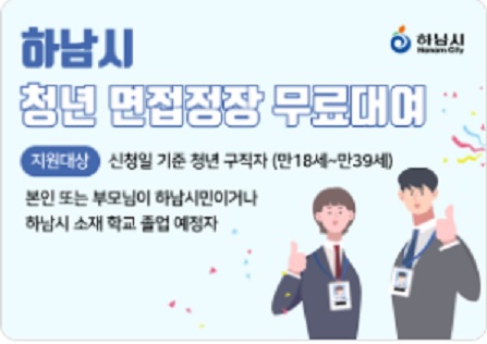 하남시에서 취업이 쉽지 않은 현 경제 상황 속에서 구직활동 기간 중 면접을 위해 필요한 면접정장 및 면접사진촬영을 무료로 지원합니다. 심리적 부담과 경제적 부담을 감소시키는 취업지원 서비스입니다. 예산소진 시 종료되니 서둘러 신청하시기 바랍니다. 아래에서 지원자격 및 신청방법을 알아보겠습니다.