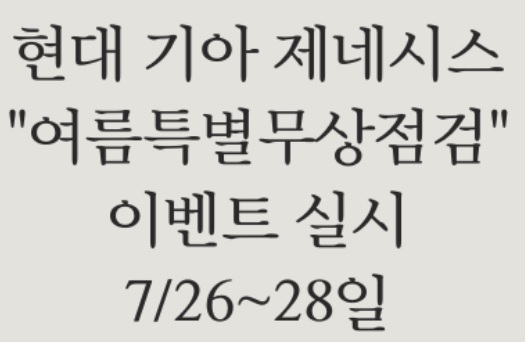 '여름무 특별 무상점검 서비스'에 대한 자세한 사항은 각 업체 고객센터(현대자동차 080-600-6000 /제네시스 080-700-6000 / 기아 080-200-2000)로 문의하면 안내가 가능합니다.