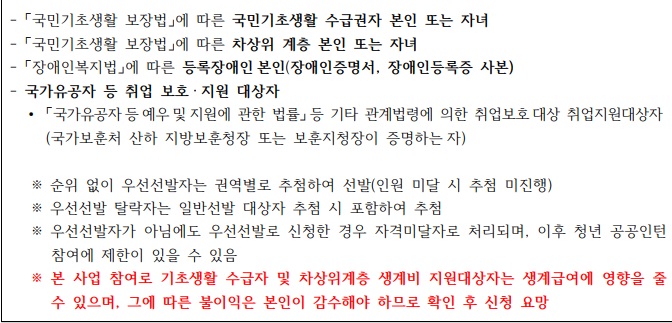 〇 선발 후 포기하는 자는 향후 청년공공인턴 참여가 제한될 수 있음