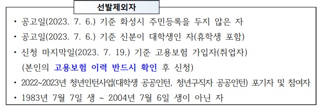 〇 공고일(2023년 7월 6일) 기준 화성시에 주민등록이 되어 있는 만 19세 ~ 39세