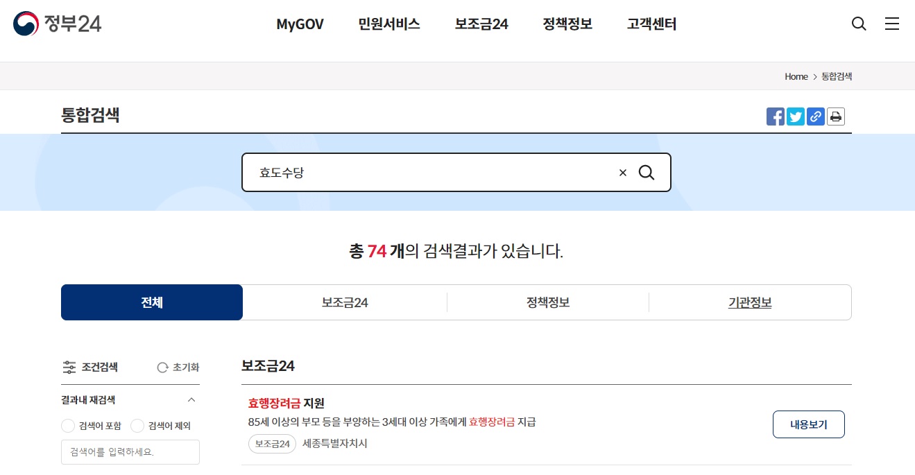 효행장려 및 지원에 관한 법률에 따라서 3대 이상이 함께 사는 가정에 지급을 하는 정부지원금이다. 대한민국은 예부터 효에 대한 깊이가 깊다. 효 문화를 확산하고 경로효진의 건전한 사회분위기를 조성하는 것을 목적으로 하였으며 지방자치단체마다 금액은 다를 수 있지만 일반적으로 40~50만 원 정도 선으로 지급된다. 뿐만 아니라 일부 지역에서는 만 100세 이상을 모시는 가정에게 매년 20만 원씩 추가지급을 하는 경우도 있다. 단, 지역화폐로 지급되어 그 지역에서만 사용해야 합니다.