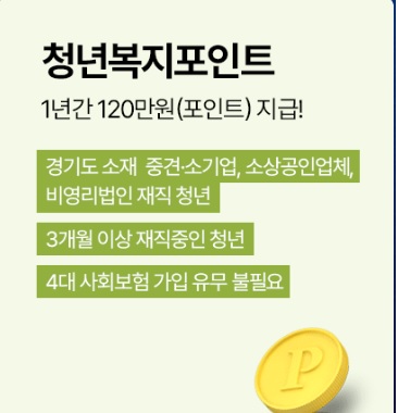 경기도에서 도내 청년 노동자들의 복리후생 개선과 일자리 미스매치 해소를 위한 ‘청년 복지포인트’ 1차 참여자 모집합니다. 연간 120만 원 상당의 복지포인트를 지급합니다. 모집기간을 놓치면 포인트를 받을 수 없고 예산 소진 시 종료되니 서둘러 신청하시기 바랍니다. 아래에서 지원자격 및 신청방법을 알아보겠습니다.