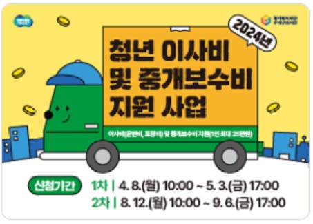 경기청년지원사업단에서 경기도 청년의 주거비 부담 경감을 위해 「청년 이사비 및 중개보수비 지원 사업」 지원 대상자를 모집합니다. 개인사비로 하면 비용이 드는데 지원을 해주니 좋은 거 같습니다. 예산소진 시 종료되니 서둘러 신청하시기 바랍니다. 아래에서 지원자격 및 신청방법을 알아보겠습니다.