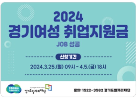경기도에서 적극적인 구직의사가 있는 도내 미취업 여성에게 구직활동비용 및 취업지원 서비스를 지원합니다. 재취업을 활성화하기 위한 「2024년 경기 여성 취업지원금」 사업의 지원대상자를 모집합니다. 아래에서 지원자격 및 신청방법을 알아보겠습니다.