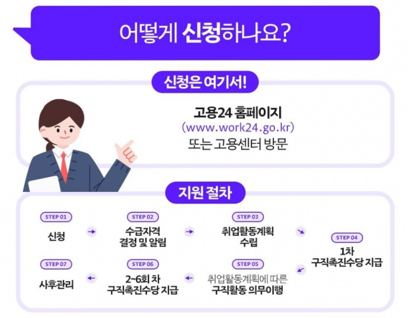 - 구직촉진수당: 6개월 동안 매달 50만 원 지원
