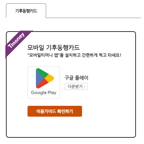 모바일카드는 안드로이드폰 이용자를 대상으로 하며,‘모바일티머니’ 앱을 무료로 다운로드하여 회원가입 후 사용할 수 있다. 첫 메인 화면에서 기후동행카드를 선택해 최초 한번 계좌를 등록한 뒤 계좌이체 방식으로 충전한 후 이용하면 됩니다.