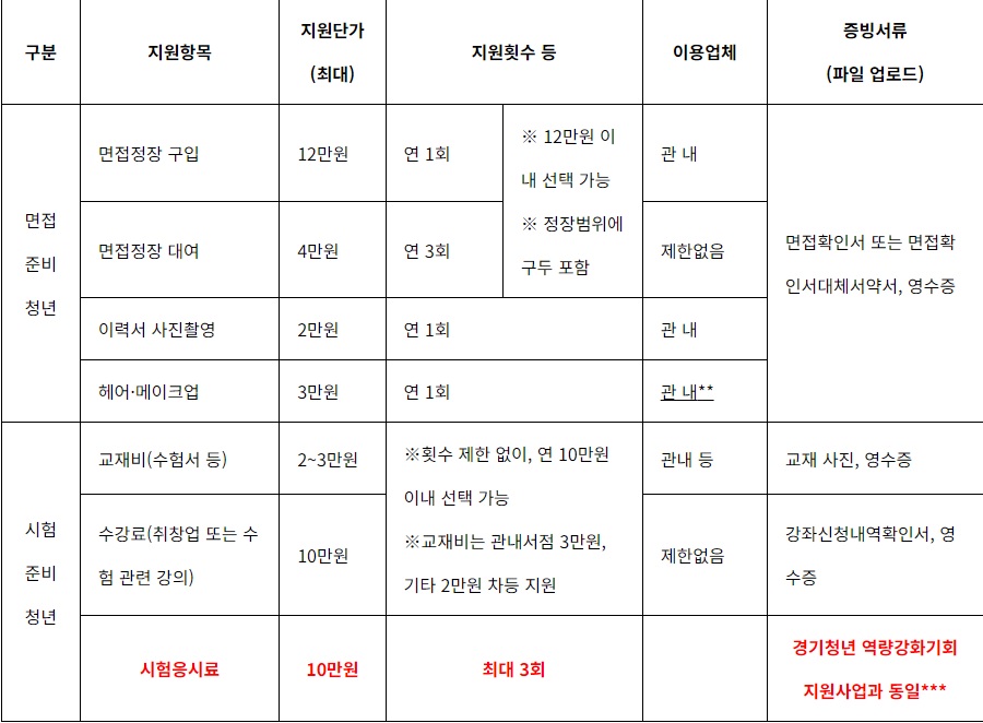 타. 시험응시료 지원은 경기청년 역량강화 기회지원 사업의 예산 소진 시 신청 접수 예정 파. 허위로 신청할 경우 환수 또는 관계법령에 따라 조치될 수 있습니다.