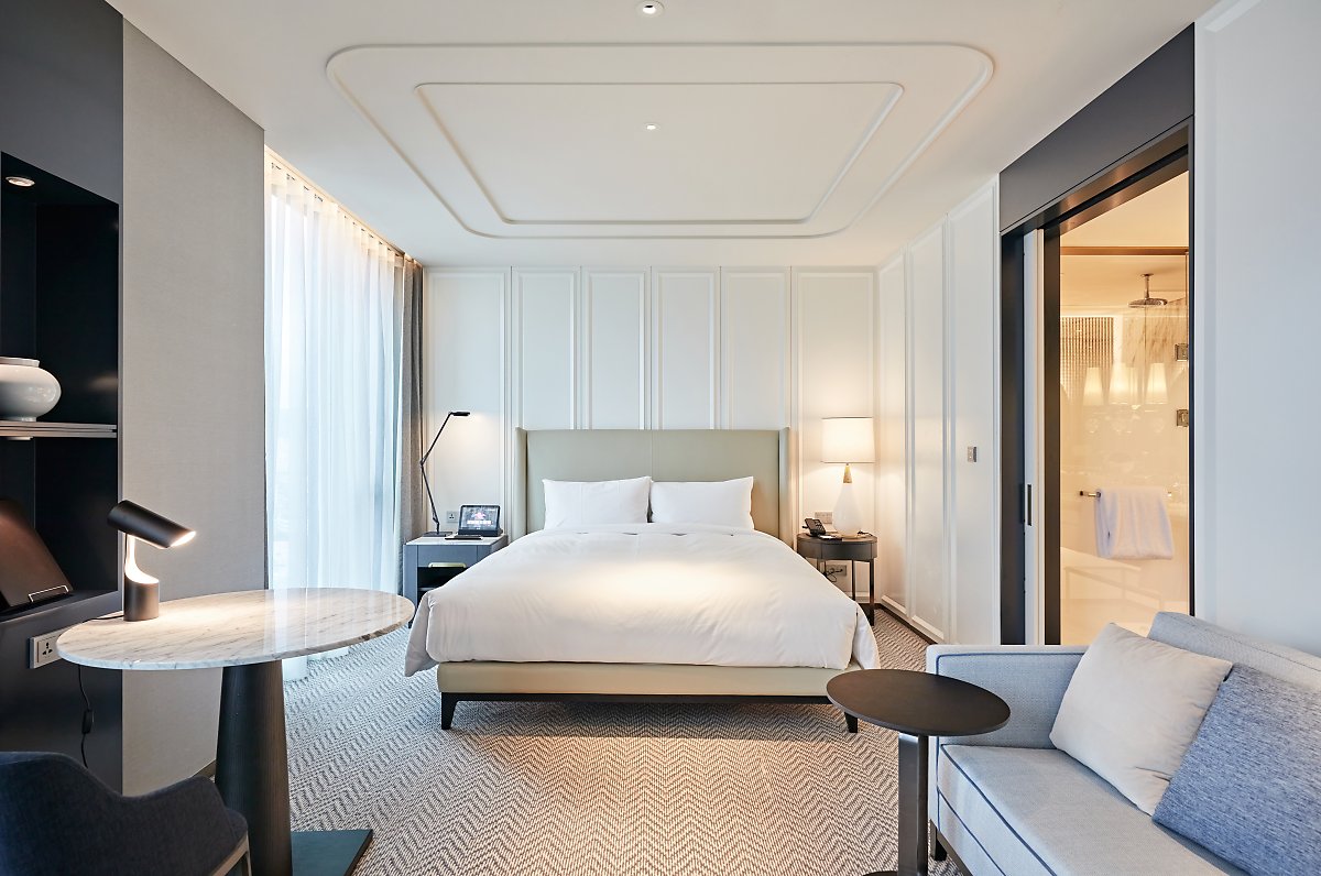 시그니엘 서울의 각 층의 벽과 카펫은 목련, 벚꽃 등의 꽃과 전통 문양에서 모티브를 얻은 패턴으로 제작되었으며, 객실 벽에는 매화를 수놓아 동양적인 멋을 더했습니다. 한국 전통의 멋을 담백하고 모던하게 풀어낸 실내 디자인에 창 너머 서울의 현대적인 풍경과 어우러지며 시그니엘서울의 고유한 인테리어를 완성합니다.