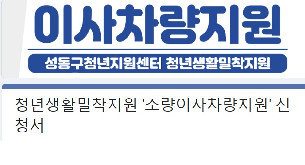 서울 성동구에서 전국최초 '청년 1인가구 지원 조례'를 제정했습니다. 23년도에 이어 24년도에도 성동구 청년들에게 이사차량을 지원합니다 개인사비로 하면 비용도 많이 드는데 무료입니다. 이사차량지원이 필요한 성동구 청년은 선착순이니 서둘러 신청하시기 바랍니다. 아래에서 이용대상자격 및 신청방법을 알아보겠습니다.