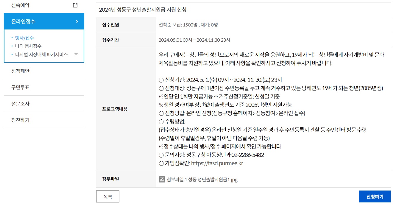 : 온라인 신청(성동구청 홈페이지> 성동참여> 온라인 접수)