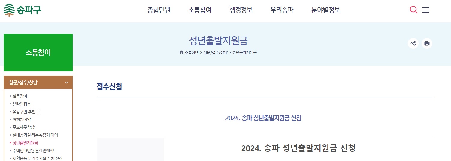 : 송파구 홈페이지 온라인 신청