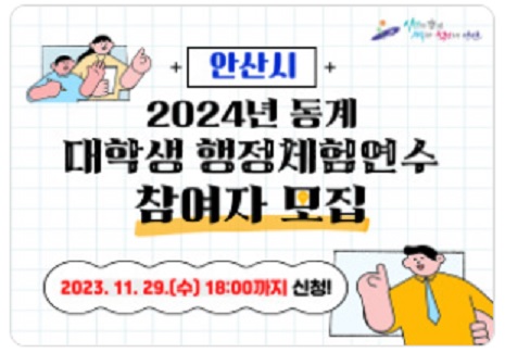 안산시에서 관내 거주 대학생을 대상으로 행정체험 기회를 제공하며 용돈도 벌 수 있는 겨울방학 행정체험연수 참여자 171명을 모집한다고 합니다. 행정체험을 통한 시정 이해와 자기 계발 기회 마련을 할 수 있습니다. 신청기간이 짧으니 서둘러 신청하시기 바랍니다. 아래에서 지원자격 및 신청방법을 알아보겠습니다.
