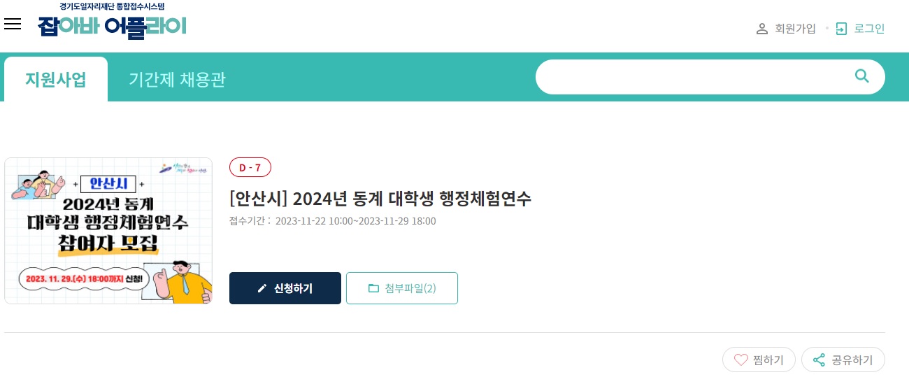 - 공고일(2023.11.15.) 기준 안산시에 주민등록이 되어있는 15~29세 국내대학 재학생